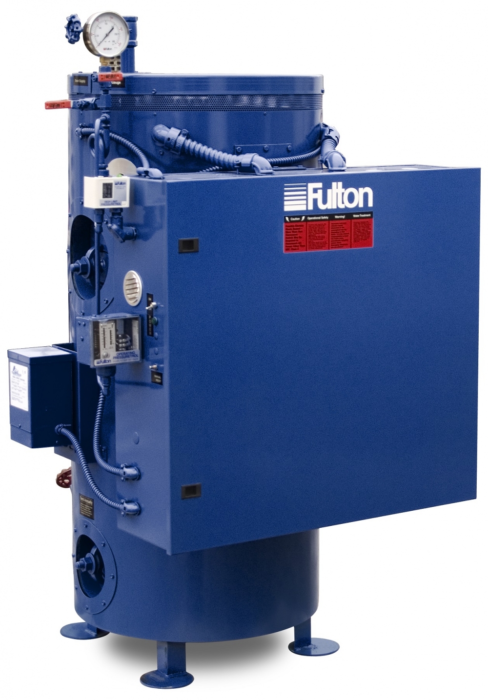 Nearly 100% Efficient Quiet and Safe Operation Zero NOx Emissions Available Sizes: 1.2 - 100 BHP 12 - 981 kW Output: 41k - 3.4MM Btu/hr 10k - 861k kcal/hr Fulton Electric boilers are extremely efficient because the heating elements are totally immersed in water and the pressure vessel is fully insulated, which results in minimal radiation losses. With a carefully calculated heat to steam ratio, operating pressures are achieved quickly and with maximum efficiency.