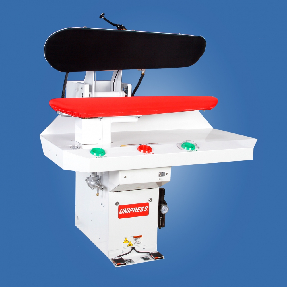 The Unipress 42X & 45X, are designed with the operator and owner in mind. Operators find this machine very practical because of the open area of the buck, allowing unrestricted movement of garments, which increases production and improves quality. Owners are impressed with the reliability and low-capital cost.