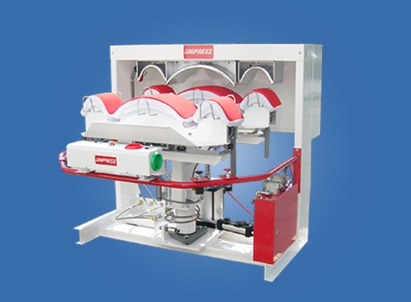 The new Unipress Q4T is innovative collar and cuff press capable of processing two shirts at the same time. Whilst one shirt is being loaded the other is being pressed, reducing wasted loading time and improving efficiency.
