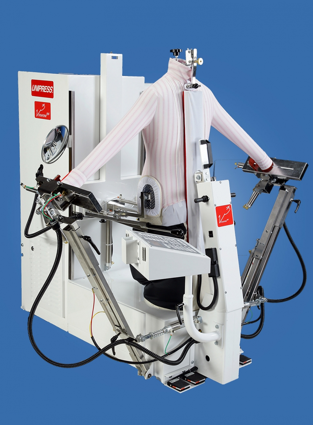 The Unipress Versaform V3, handles the widest range of garments available: Ladies Blouses (Size 2) Sport Coats Lab Coats Silks and more... Tensioning Shirt Unit: Body Finisher & Sleever Collar & Cuff Press