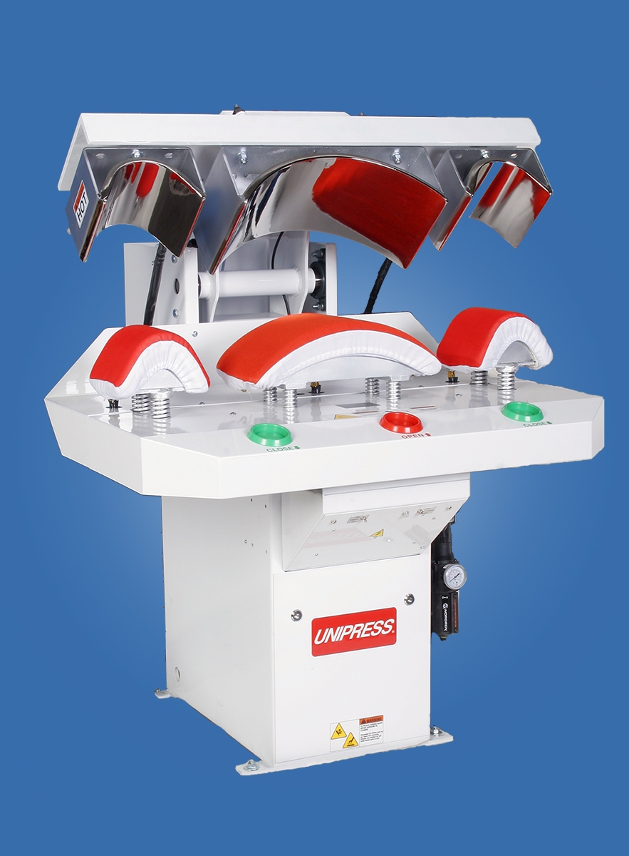 The Unipress 3TZ Tensioning Collar & Cuff Press beautifully finishes the cuffs & collars for shirts.